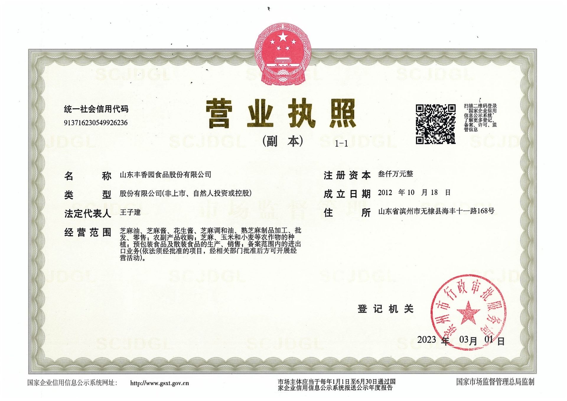 山東豐香園食品股份有限公司位于無棣縣西城工業(yè)園,成立于2012年,注冊資本3000萬元,員工60多人,年銷售收入8000多萬元,是“國家高新技術(shù)企業(yè)”、“中國好糧油”示范企業(yè)、“食安山東”示范生產(chǎn)加工企業(yè),公司集綠色、有機芝麻食品標準化、生產(chǎn)加工、研發(fā)、出口銷售為一體的山東省農(nóng)業(yè)產(chǎn)業(yè)化“重點龍頭企業(yè)”。        公司獲得HACCP國際質(zhì)量體系認證、ISO9001:2015質(zhì)量管理體系認證,產(chǎn)品獲得美國FDA認證、美國、歐盟有機食品認證、英國BRC體系認證、A級綠色食品認證、GB國標有機食品認證。        公司主要產(chǎn)品有芝麻油、芝麻醬、花生醬、芝麻粉和烘焙芝麻、兒童芝麻食品系列等六大種類上百個品種,產(chǎn)品出口美國、日本、韓國、新加坡、俄羅斯、澳大利亞、美國、等30多個國家。2018-2019年連續(xù)兩年芝麻食品出口量排名山東省第三位、濱州市第一位。        山東豐香園食品股份有限公司是國家級高新技術(shù)企業(yè),建有省級“一企一技術(shù)”研發(fā)中心、市級企業(yè)技術(shù)中心和市級工程實驗室、市級工程技術(shù)中心等多個創(chuàng)新平臺,擁有發(fā)明專利2項,實用新型專利21項,先后獲得省級“專精特新”中小企業(yè)、市級農(nóng)業(yè)產(chǎn)業(yè)化聯(lián)合體、科技型中小企業(yè)、濱州市級瞪羚企業(yè)、市級“一企一技術(shù)”創(chuàng)新企業(yè)和濱州市新興產(chǎn)業(yè)“白名單”企業(yè)等榮譽稱號。